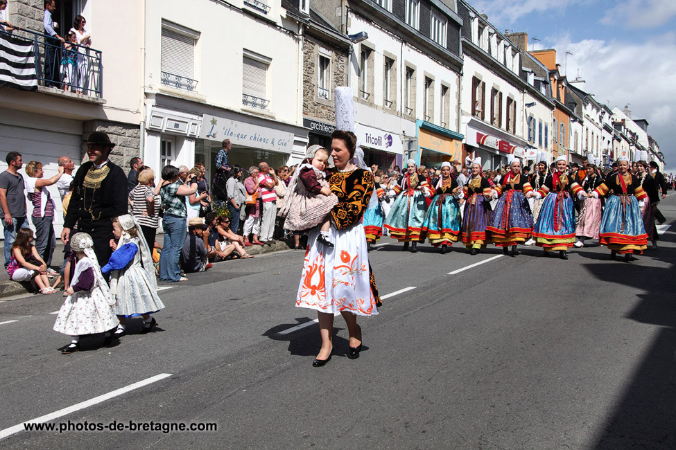 Photos du Festival des Filets Bleus, à Concarneau, en 2013, coiffes, costumes, danses et la reine : Alexandra