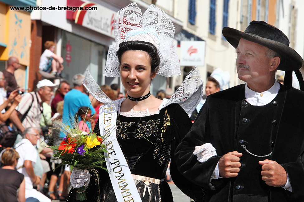 Photos du Festival des Filets Bleus, à Concarneau, en 2013, coiffes, costumes, danses et la reine : Alexandra