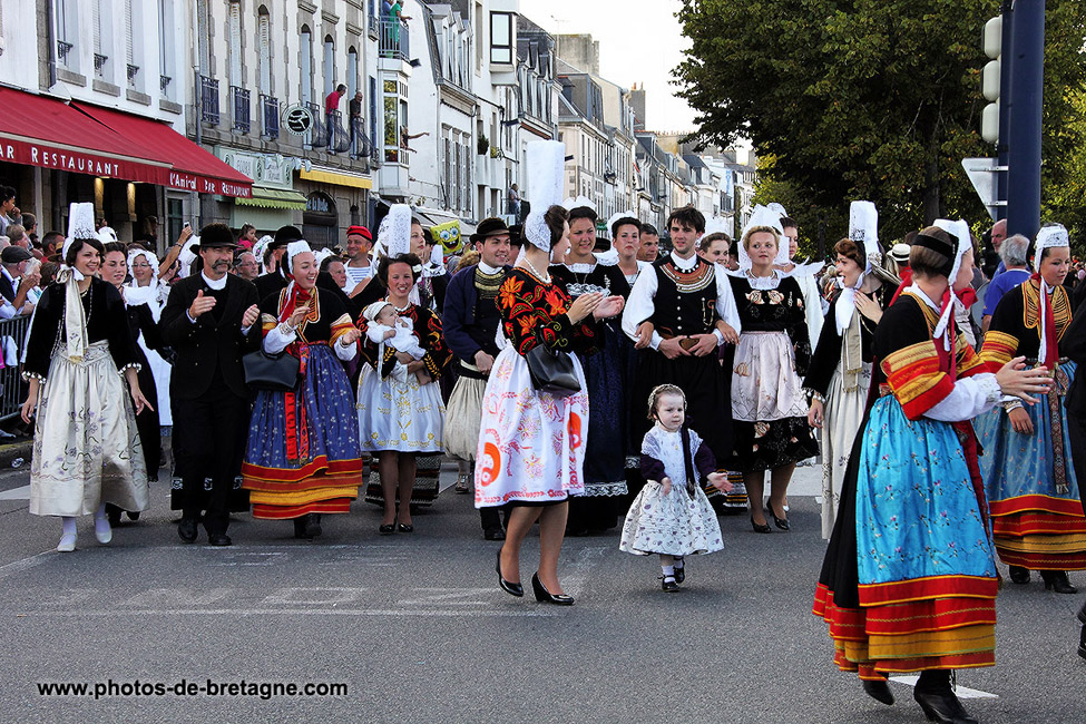 Photos du Festival des Filets Bleus, à Concarneau, en 2013, coiffes, costumes, danses et la reine : Alexandra